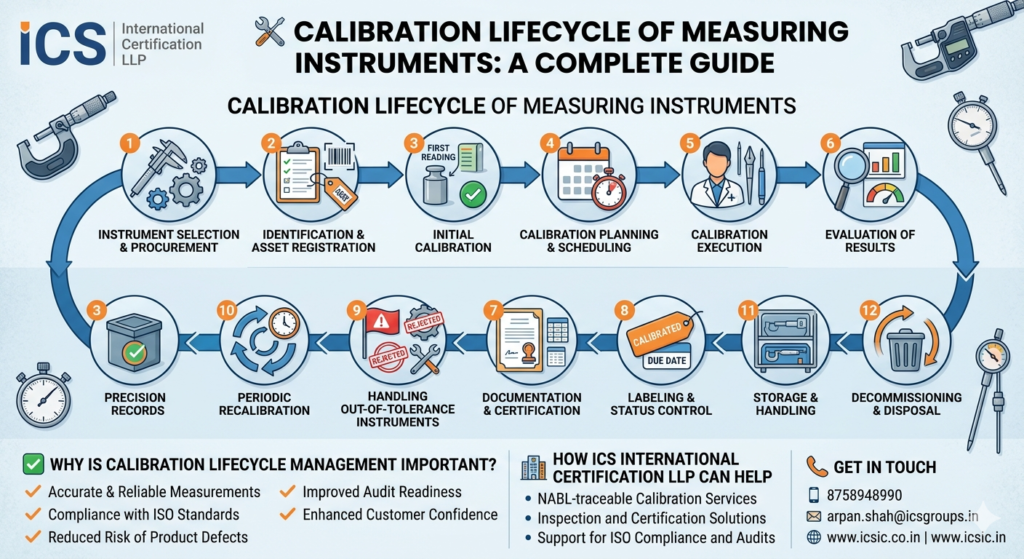 At ICS International Certification LLP, we emphasize the importance of a well-defined calibration lifecycle to maintain measurement integrity and audit readiness.