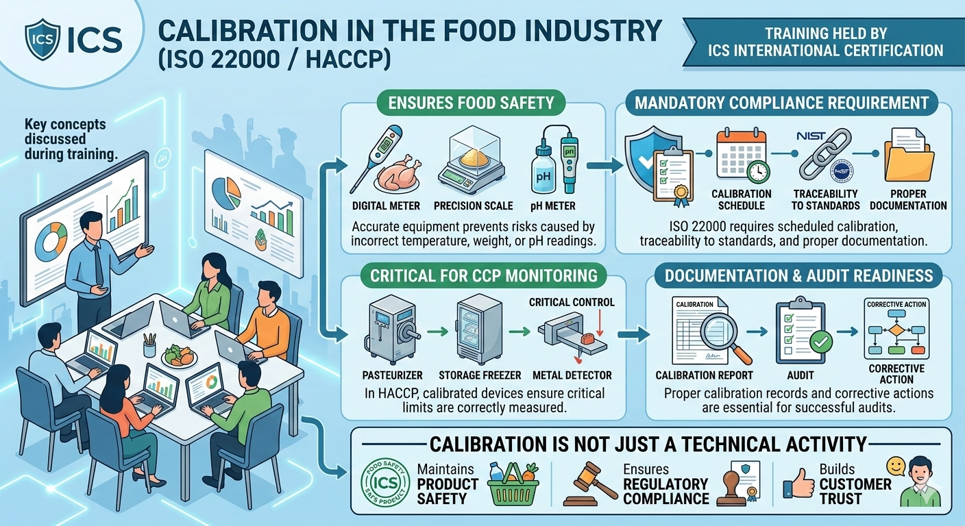 Training held by ICS International Certification Calibration is a critical requirement in food manufacturing to ensure accurate measurement and safe food production. During the training session, key concepts related to