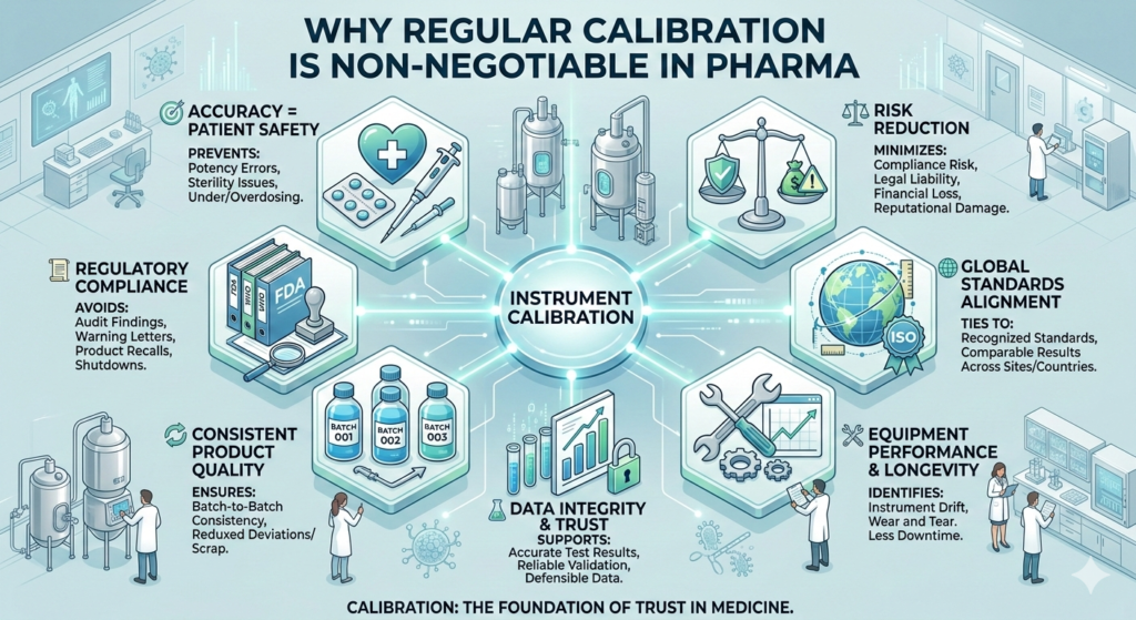 In the pharmaceutical industry, precision is not optional. Every process, from raw material testing to final product release, relies on accurate measurements. Regular calibration of equipment ensures that these measurements remain reliable, compliant, and safe for patients.